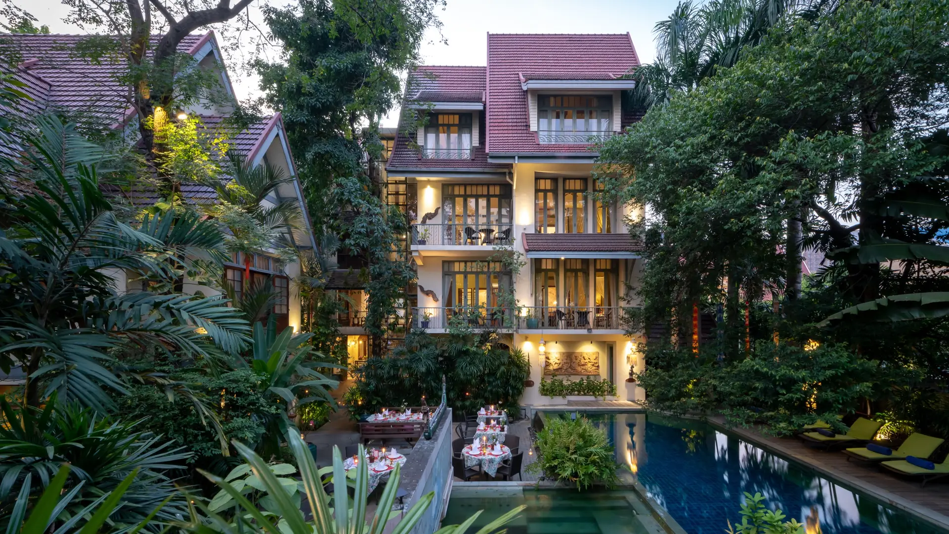 The 24 guestrooms evoke the charm of Bangkok’s past, exquisitely designed in Thai style while offering home comforts. The hotel is inward-looking, built around a lush tropical garden providing sanctuary from the city.