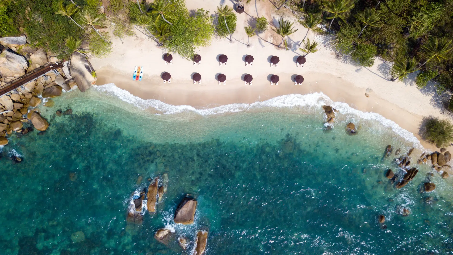 Free kayaks and diving equipment are available for rental if you feel like getting out and exploring the ocean. The crystal clear waters around Koh Samui are known for their abundant, multicoloured marine life to explore.