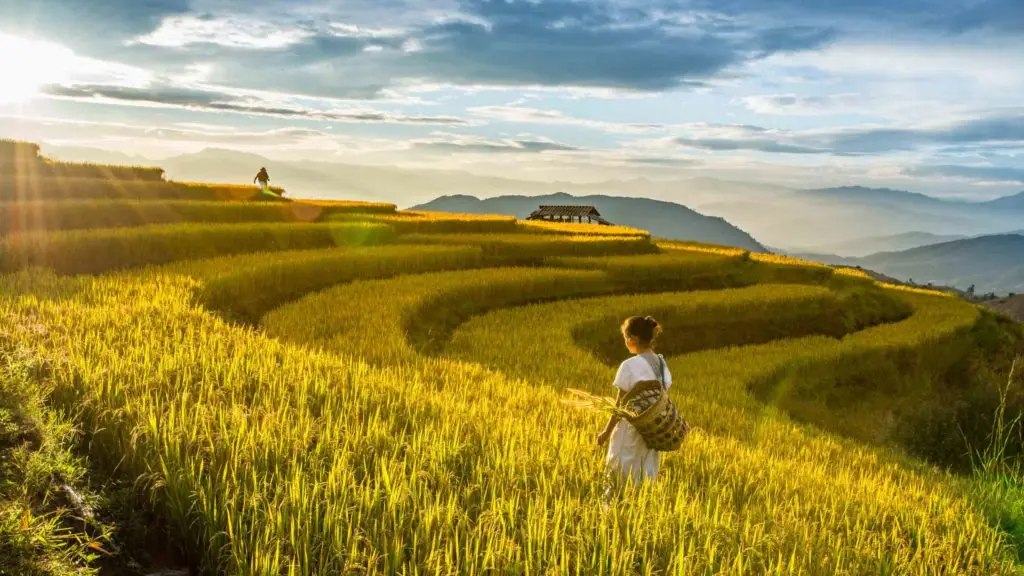 The evening wraps up with a classic Thai BBQ served in the rice fields under the stars.
